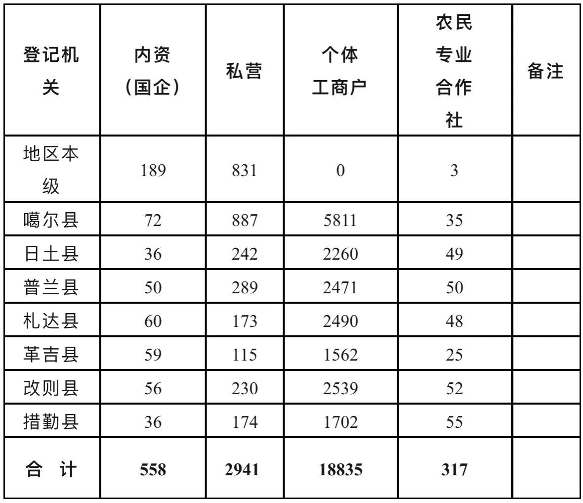 非公有制经济组织中:私营企业(民营企业)2941户(占市场主体12.98%),注册资金185.22亿元;个体工商户18835户(占市场主体83.15%),注册资金37.62亿元;农牧民专业合作社317户(占市场主体1.4%),注册资金6.3亿元。
