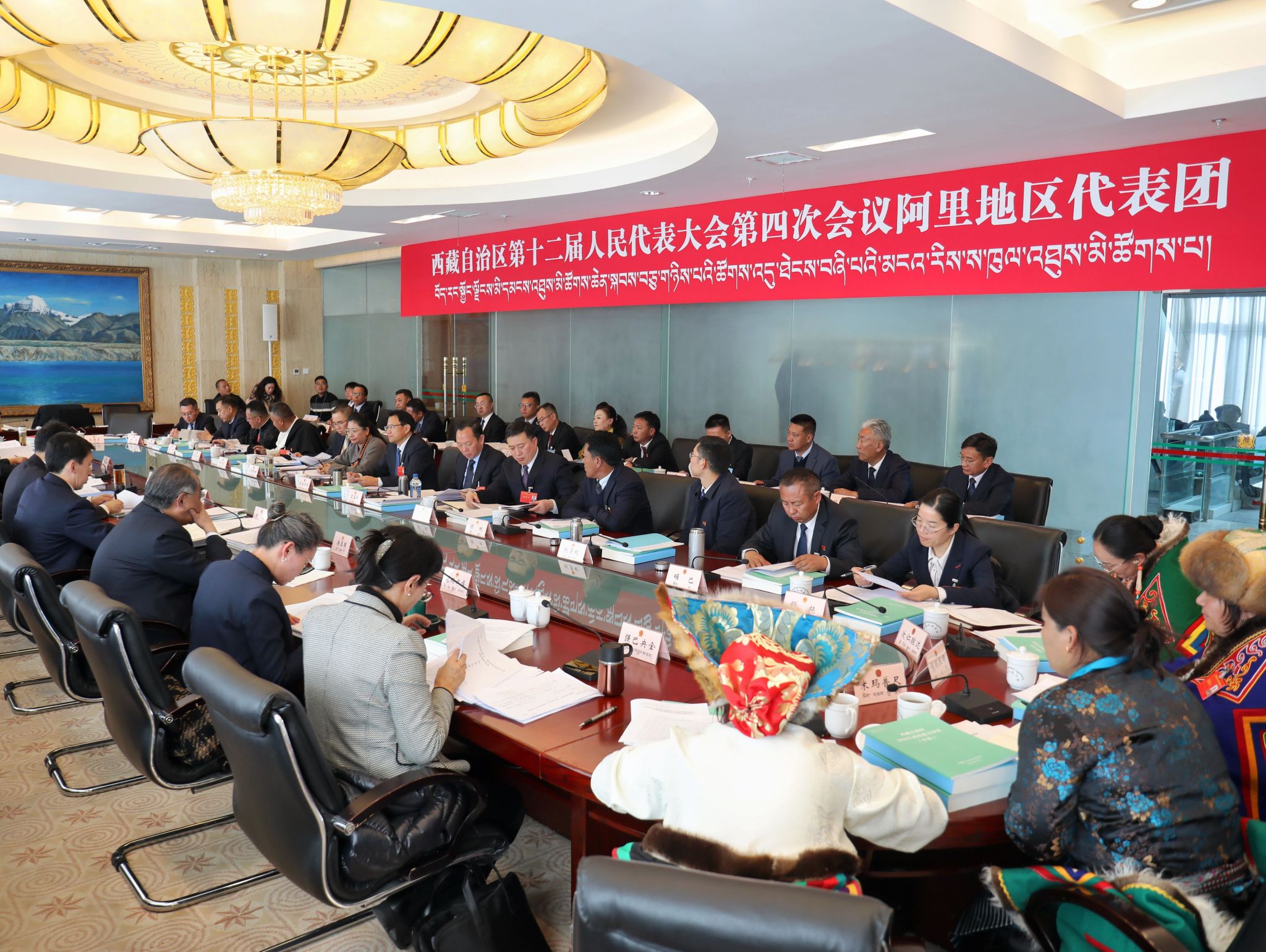 出席自治区第十二届人民代表大会第四次会议的阿里代表团全体代表、列席人员参加讨论。