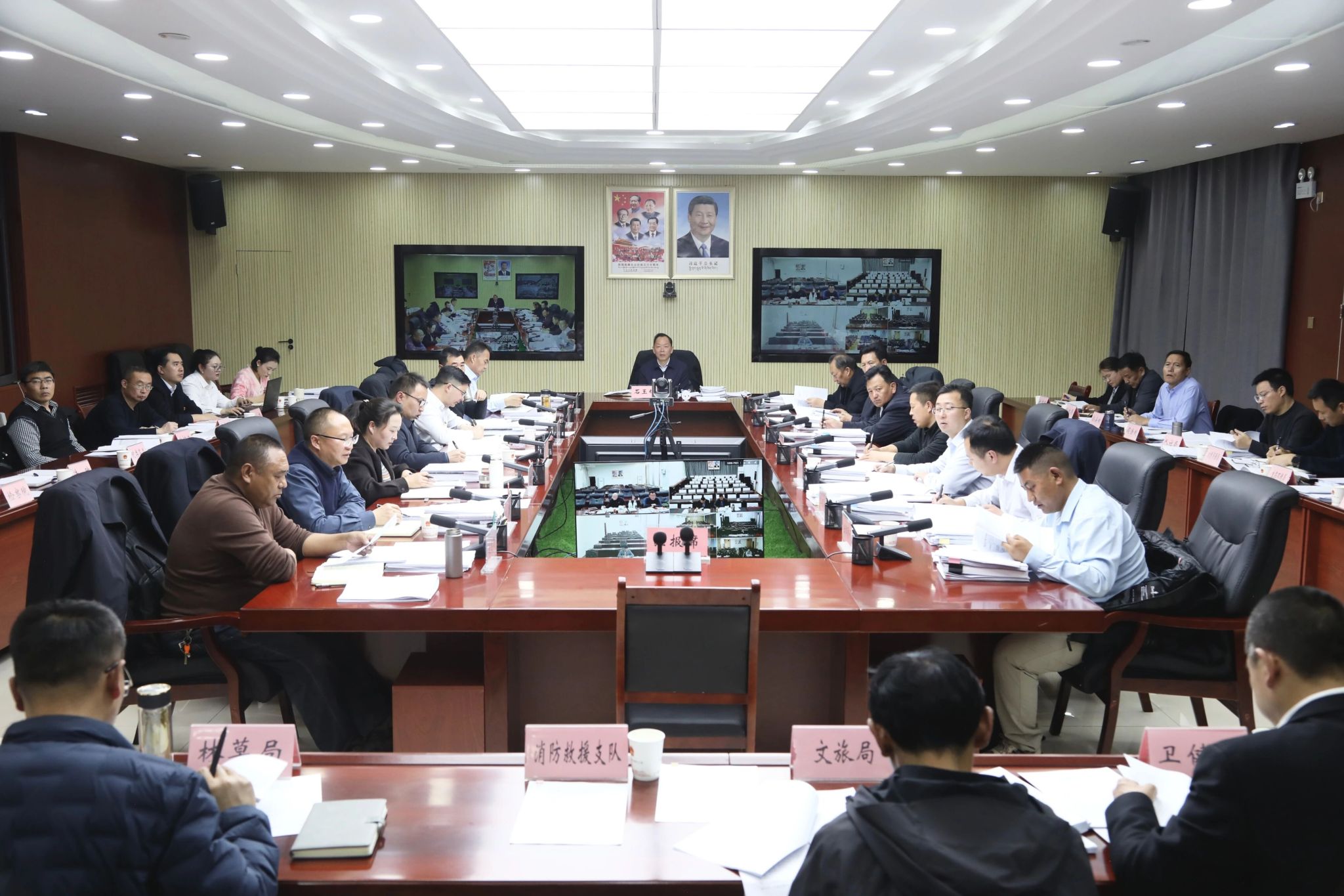 3月5日,地委副书记、行署专员石玉辉主持召开行署2026年第1次专员办公会议。 记者 扎西达瓦 摄