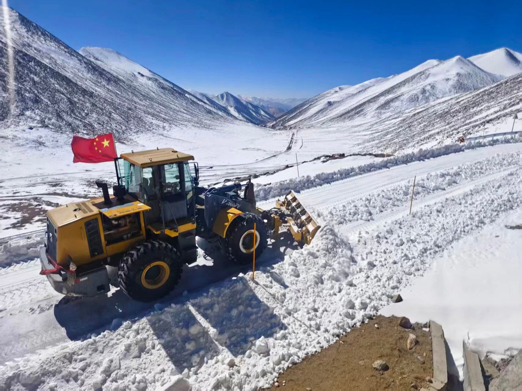 近日,阿里地区日土县境内遭遇持续风吹雪恶劣天气,省道303线垄吉山口路段出现大面积积雪结冰,导致道路交通中断,群众出行安全受到影响。为全力保障道路安全畅通,噶尔养护段第一时间组织力量开展抢险保通作业。