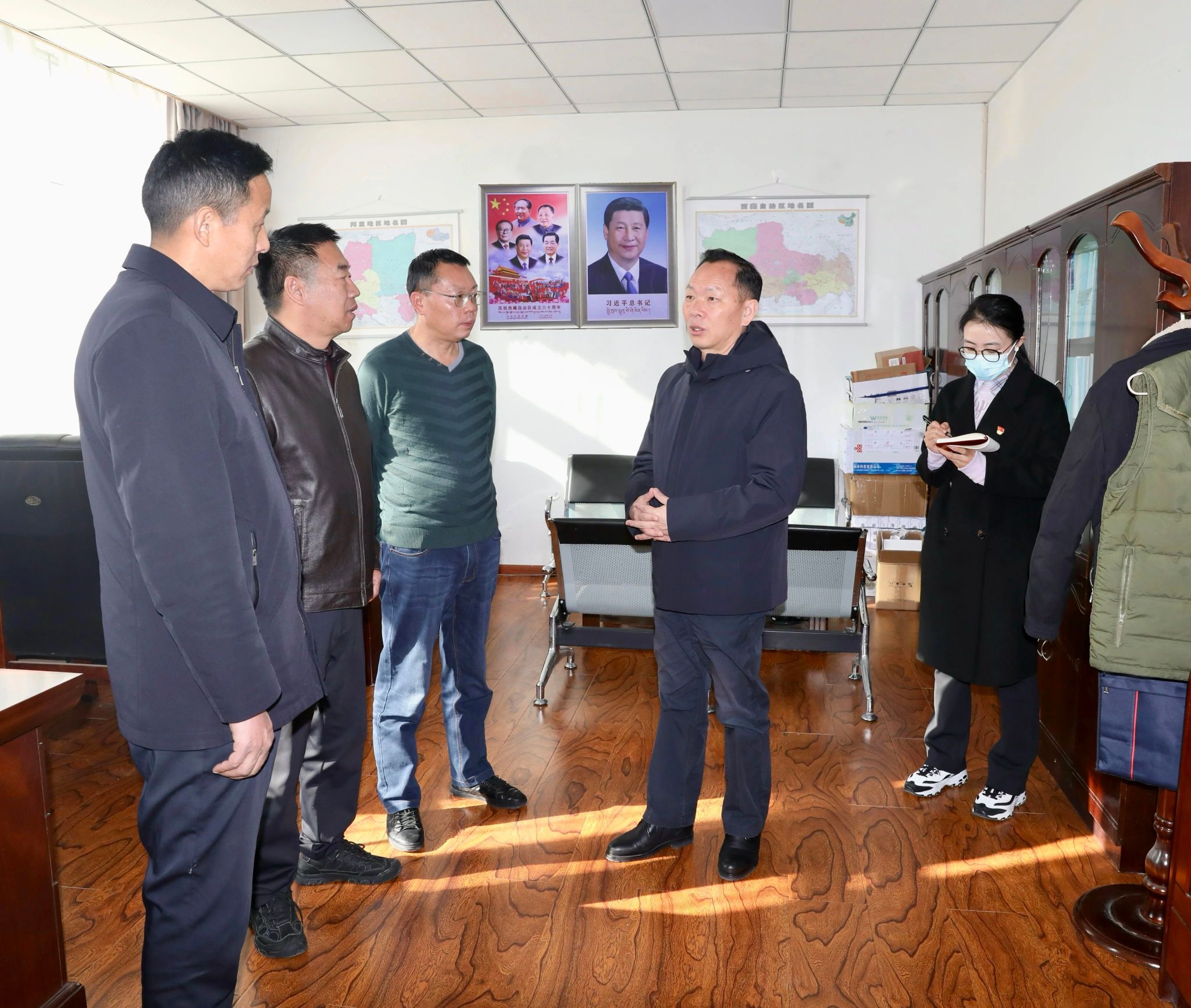 石玉辉先后来到地区能源局、投资促进局、科技局、经济和信息化局,与一线干部职工亲切交流,对大家一年来的辛勤付出和作出的积极贡献表示感谢,鼓励大家齐心协力、再接再厉,为阿里经济社会高质量发展贡献力量。