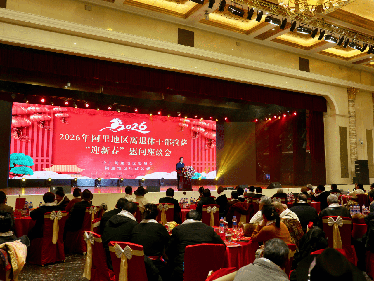 1月25日,阿里地区看望慰问离退休干部座谈会在拉萨举行。地委书记索南丹增,地委副书记、行署专员石玉辉,地委副书记、政法委书记李斌,人大地工委主任扎西措姆,地区政协主席吕新民等地区“四大班子”领导,与400余名老干部、老同志欢聚一堂,共叙发展成就,互致新春祝福。
