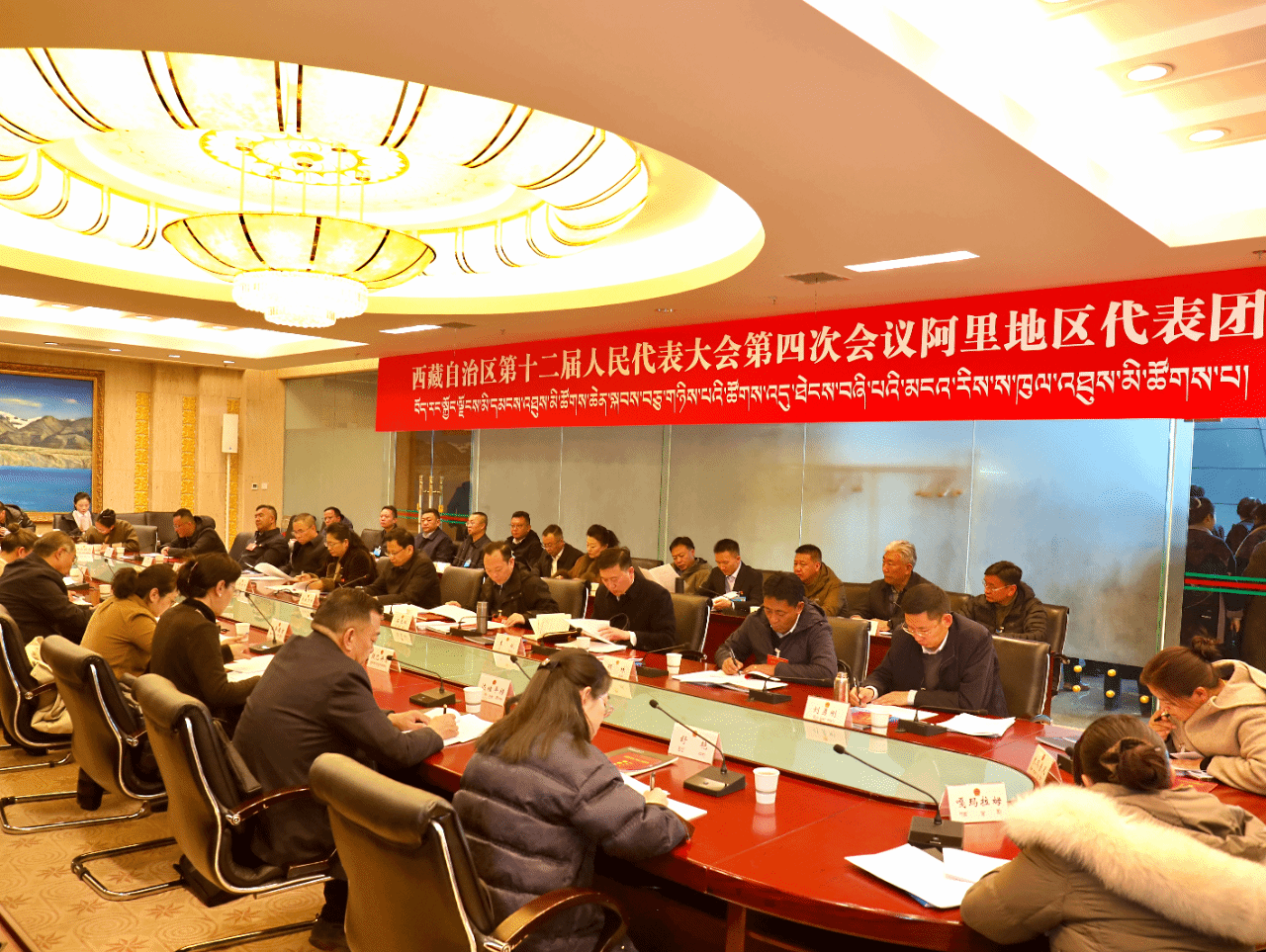 1月29日,自治区十二届人大四次会议阿里代表团召开第一次全体会议。这是会议现场。记者 卓玛石确 摄
