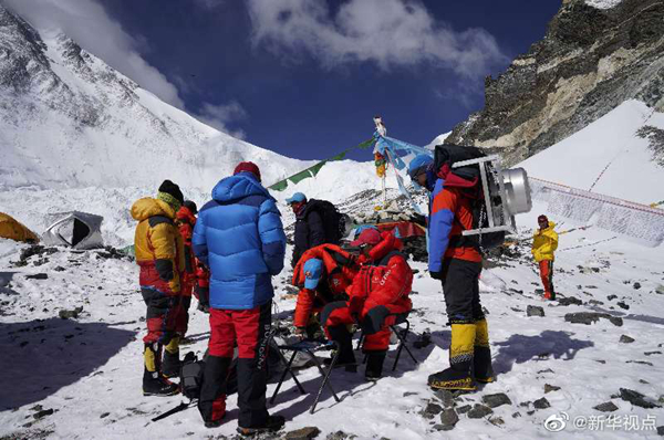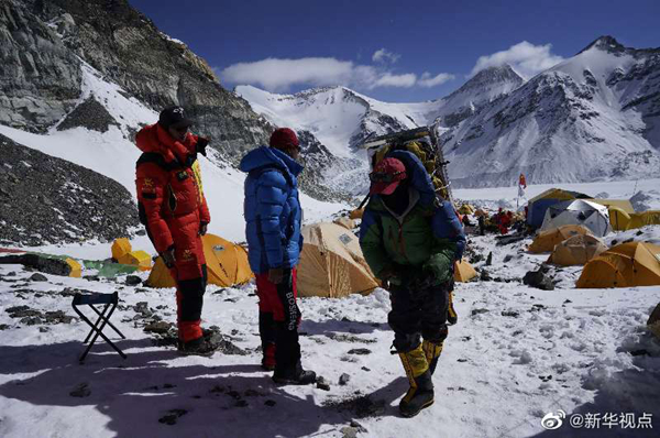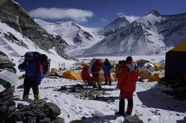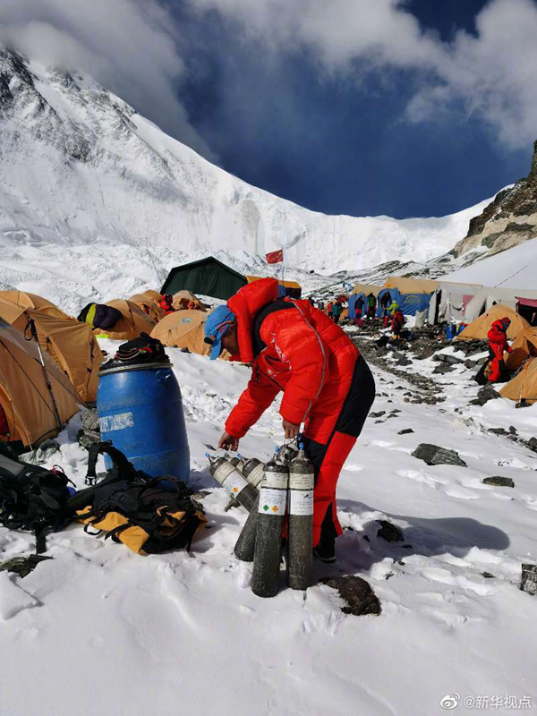 8日,珠峰高程测量登山队在海拔6500米的前进营地休整、调试设备,登山向导出发向海拔7028米的营地运输高山氧气、燃料等物资。据西藏圣山公司的向导们透露,天气不错,明后天保护绳有望铺设到顶峰,也就是通往顶峰的“路”有望修通!这也是登顶重要的前提条件之一。(记者边巴次仁、王沁鸥、魏玉坤;特约记者扎西次仁)