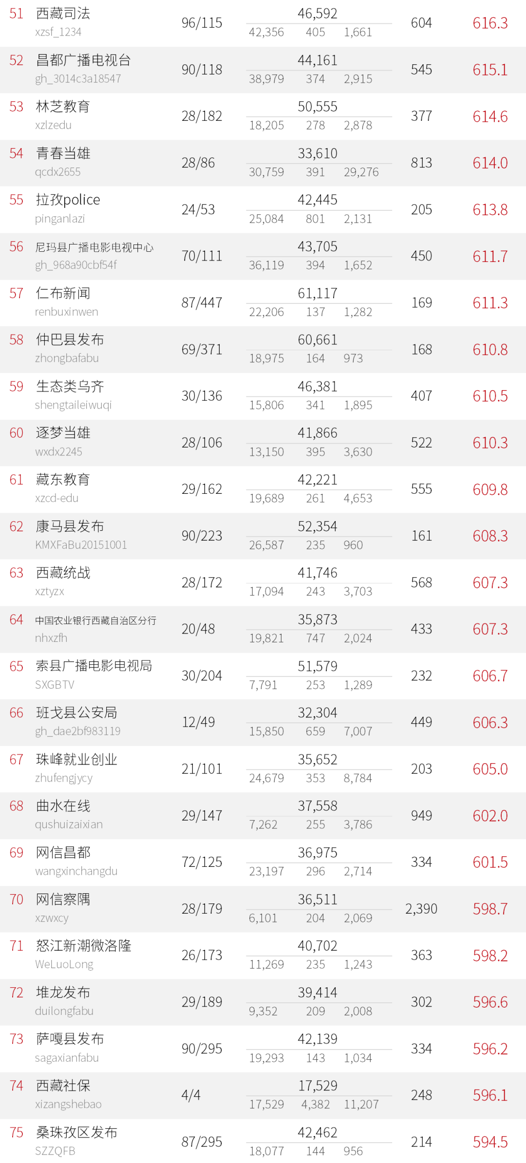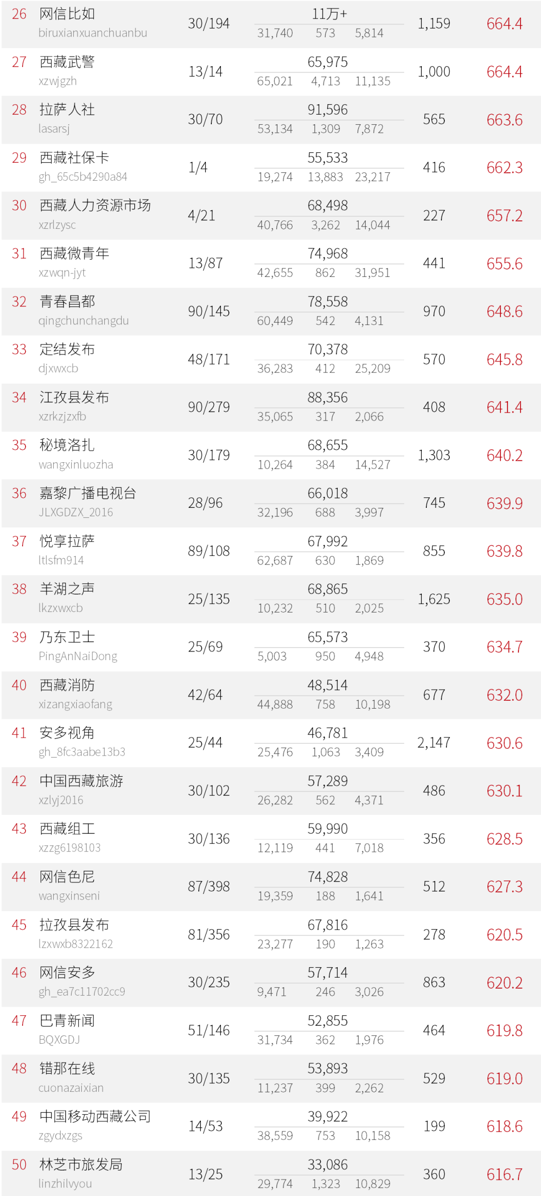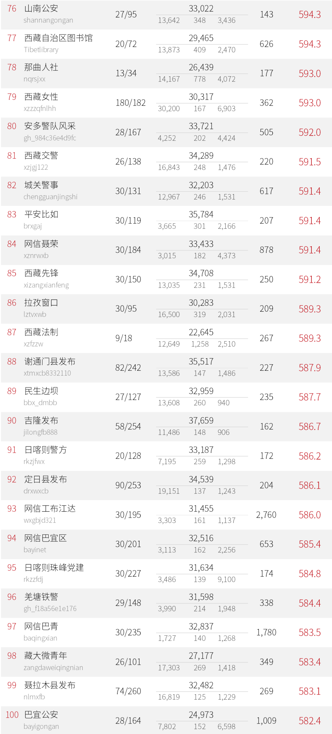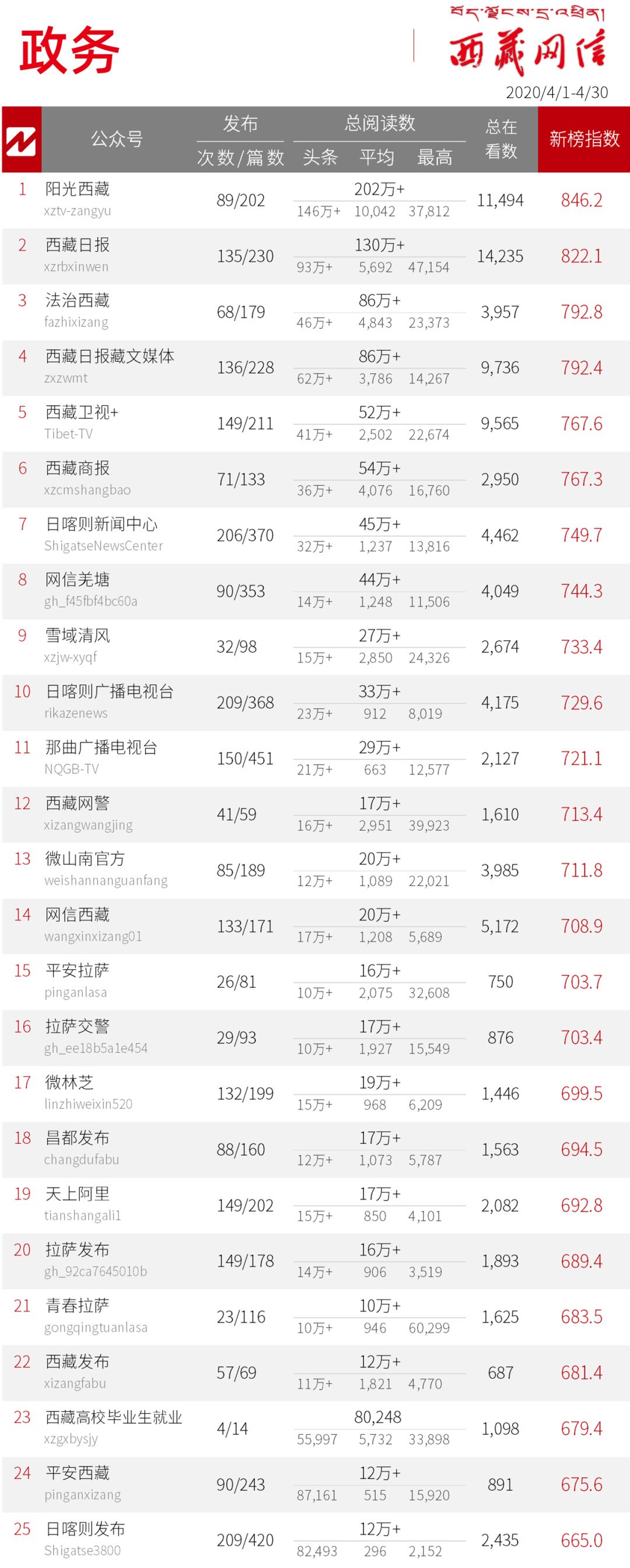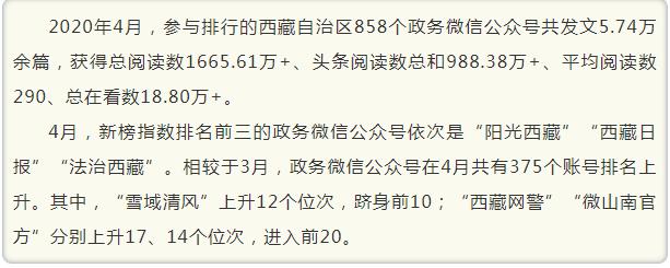 2020年4月西藏自治区政务微信公众号排行榜公布