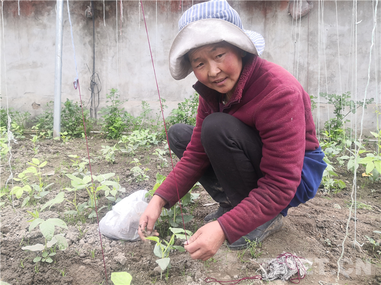 在切娃乡普纳村温室大棚里,总有一个劳作的身影,浇水、拔草、育苗每一个步骤熟稔于心,动作干脆利落。她就是普纳村村民央珍,在丈夫外出务工的时间里,4座温室大棚均由她照看打理。