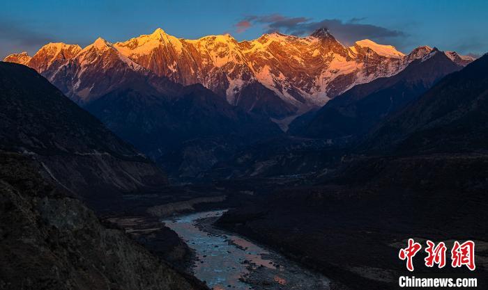 图为从雅鲁藏布大峡谷观南迦巴瓦峰日照金山景观。何蓬磊 摄