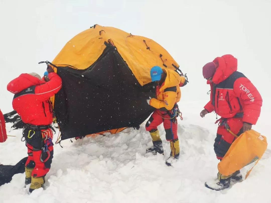 5月21日,珠峰高程测量队开始向顶峰进发,但因天气原因,海拔7790米以上区域雪深过米,为保障队员安全,2020珠峰高程测量登山队决定撤回6500米前进营地,休整待命。