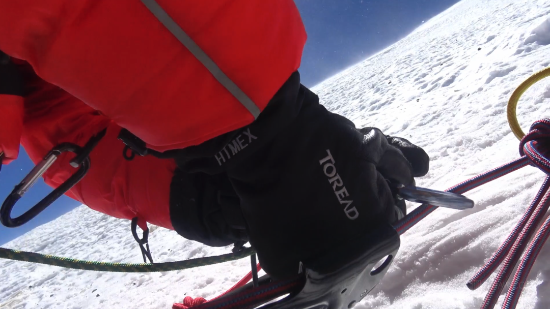5月24日14时15分,天气好转,视野逐渐开阔,部分队员迅速从前进营地出发,前往海拔7028米的北坳营地,再一次向峰顶进发。最终于5月27日成功攻顶,并展开顶峰测量任务。