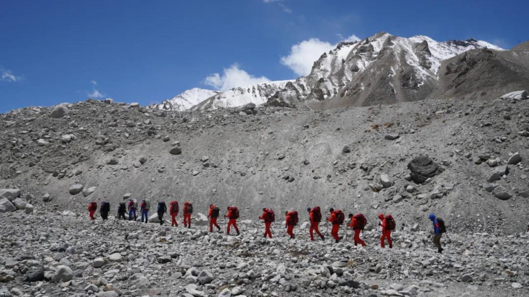 5月6日下午,珠峰测量登山队的35名队员从海拔5200米的大本营出发,开启珠峰高程登顶测量。5月8日,因发现攀登路线上雪比较深,有流雪危险,测量登山队决定分两批撤回营地。
