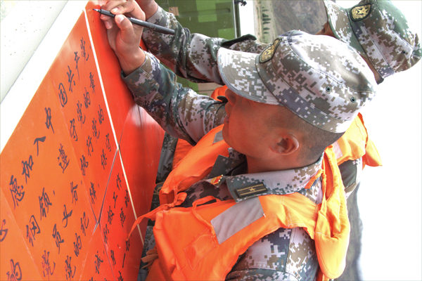 舟桥主战装备上,党员代表的发言在官兵们心中激起层层涟漪,初入党时的干劲儿和拼劲儿又重新注入心中。随后,该营政治教导员进行了以“珍视身份,珍视荣誉”为主题的现场教育,勉励广大党员发挥好先锋模范作用。活动最后,全营党员在印有入党誓词的决心书上庄重地签下自己的名字。