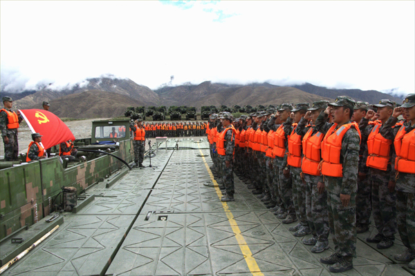 本报拉萨讯(记者 王香香 通讯员 王巍巍 邓仁龙 何鑫)近日,西藏军区某旅舟桥一营在训练间隙组织全营党员开展“重温入党誓词”活动,将爱党敬党融入官兵训练生活,向党的99华诞献礼。