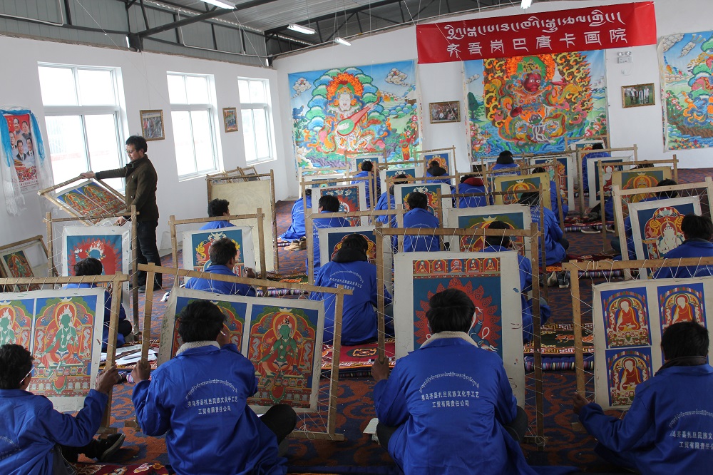 为了更好地传承齐吾岗巴画派唐卡技艺,2011年,扎巴旦增创建了雪域民族工艺中心。扎巴旦增回忆说:“那时加工中心有15名学徒,中心每月都要支付1000至2000元不等工资,还要负责学徒的衣食住行,当时压力特别大。”