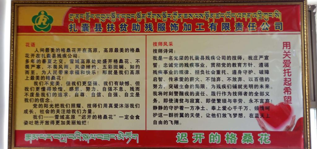 他们每个人或多或少有缺憾,可他们懂得珍惜、感恩、努力,有着自强不息的精神。在维持日常生活的同时,还能通过自己的一技之长增加家庭收入。在生命的旅途中,他们用勤劳的双手让自己的生命更有价值,他们是雪域高原上“迟开的格桑花”!
