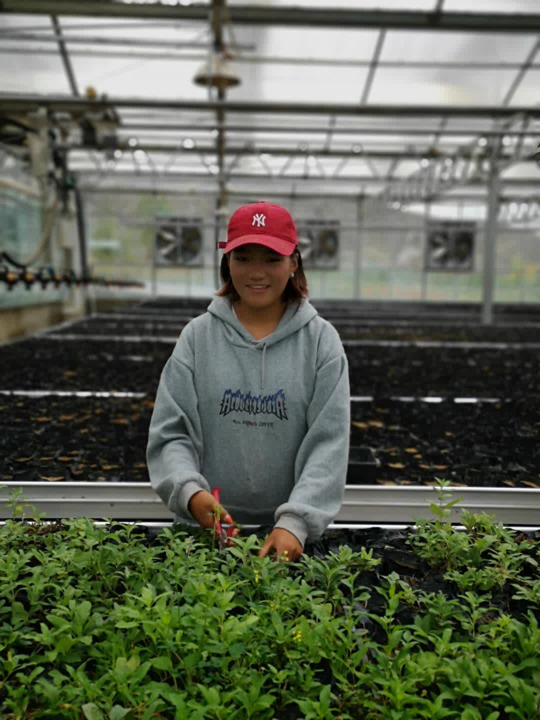 扎囊县阿扎乡章达村的大学生旦珍利用假期来藏草基地打工。