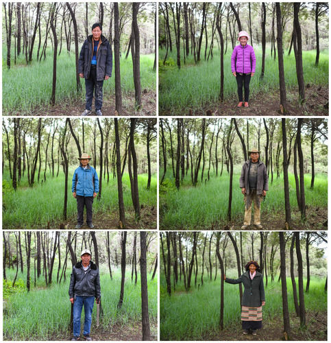 山南市隆子县新巴乡忙措村参与种植沙棘林的村民代表在沙棘林里留影(2017年7月11日摄,拼版照片)。 新华社记者 普布扎西 摄