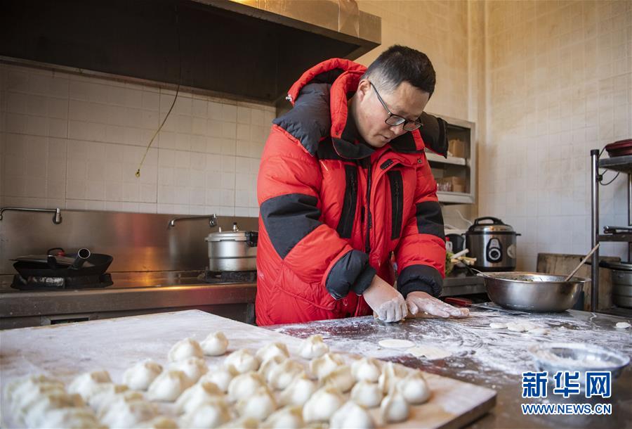 席振华在擀饺子皮(1月24日摄)。新华社记者孙非摄