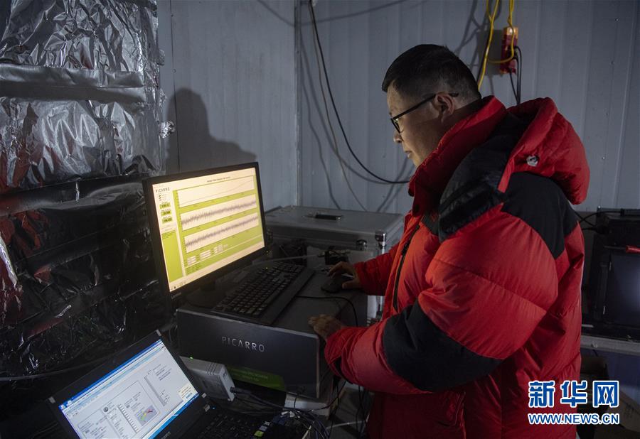 席振华从观测设备上下载监测数据(1月25日摄)。