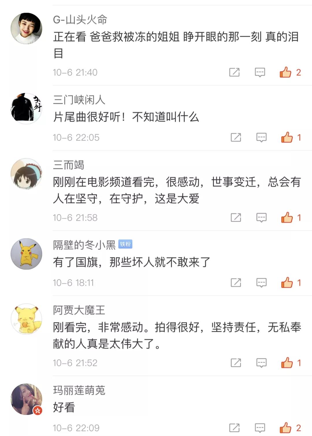 这部电影画面拍得非常美,剧情完整,我们感受到了电影背后的感情,浓浓的爱国情让我很感动。