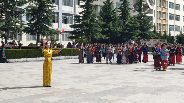 为庆祝新中国成立70周年,营造“不忘初心、牢记使命”和“青春心向党、建功新时代”主题教育良好氛围,9月24日上午,西藏职业技术学院千名师生开展了“千名师生青春告白伟大祖国”主题团日快闪活动。