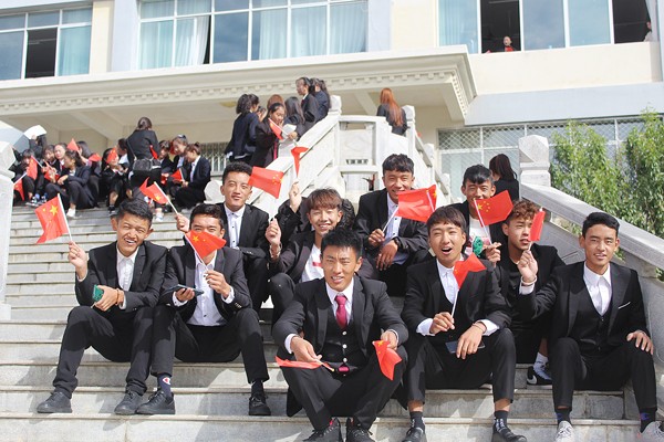 成才不负青云志,报国胸怀赤子心。西藏职业技术学院的学子们在国旗的辉映下,在朝阳的光辉中,立志在中国特色社会主义思想的引领下,以优异的成绩向新中国成立70周年献礼,用青春谱写祖国的绚丽华章。(文/图 记者 刘欢)