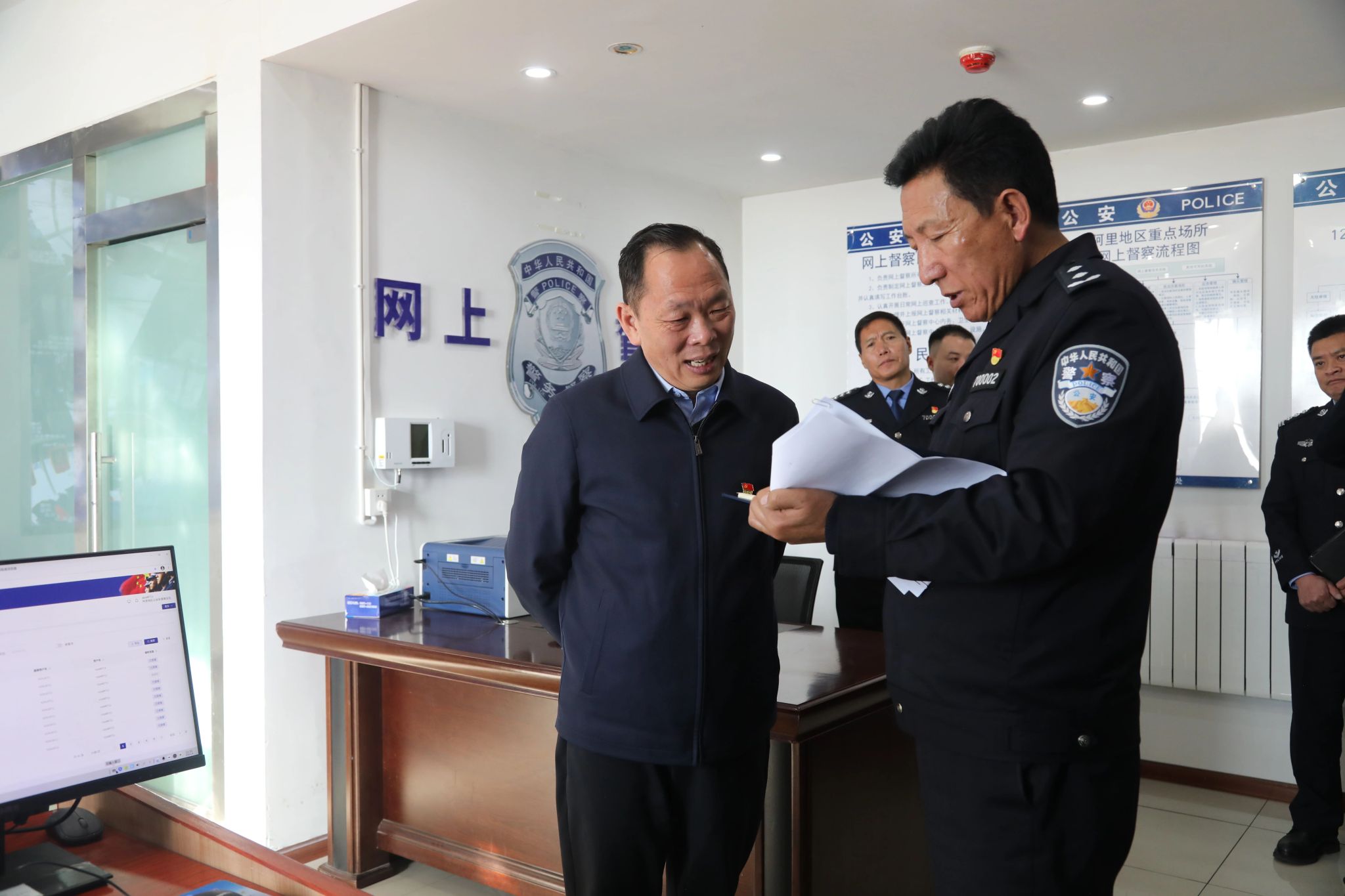 地委副书记,行署专员石玉辉在公安处调研安全稳定工作。记者 扎西达瓦 摄