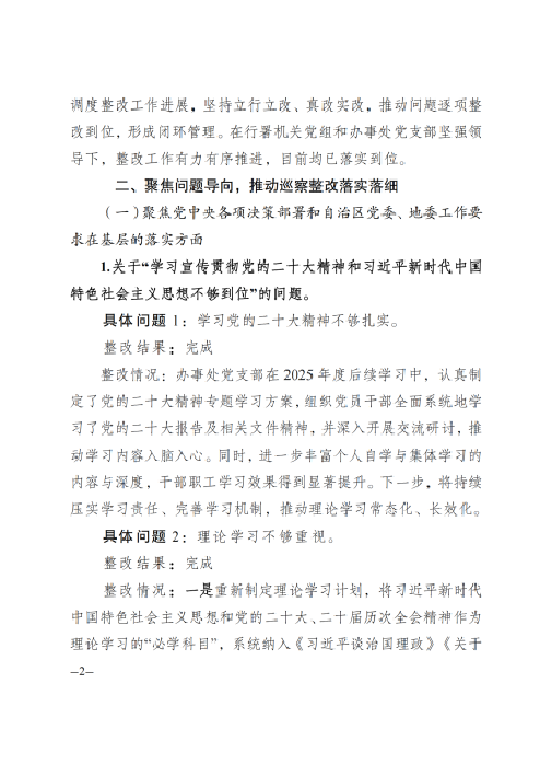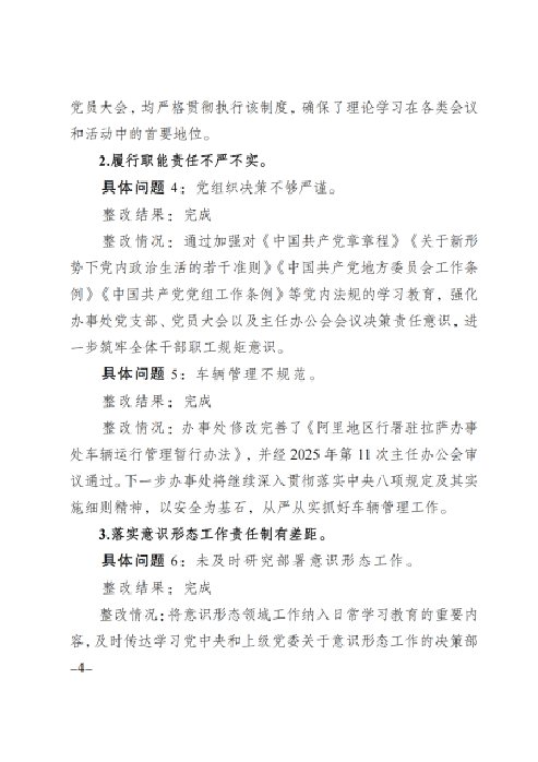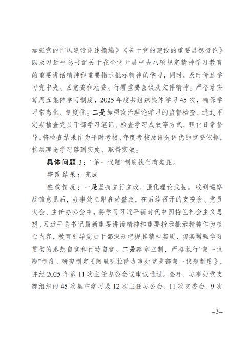 阿里地区行政公署驻拉萨办事处关于巡察整改进展情况的通报